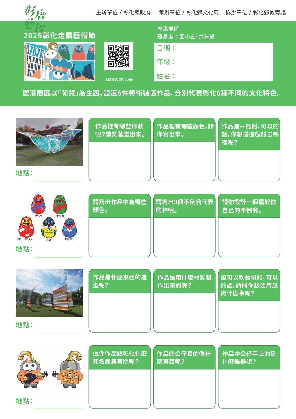 ❣️集章方式:於彰化縣立美術館活動服務台填寫學習單,即可獲得小禮物1份。