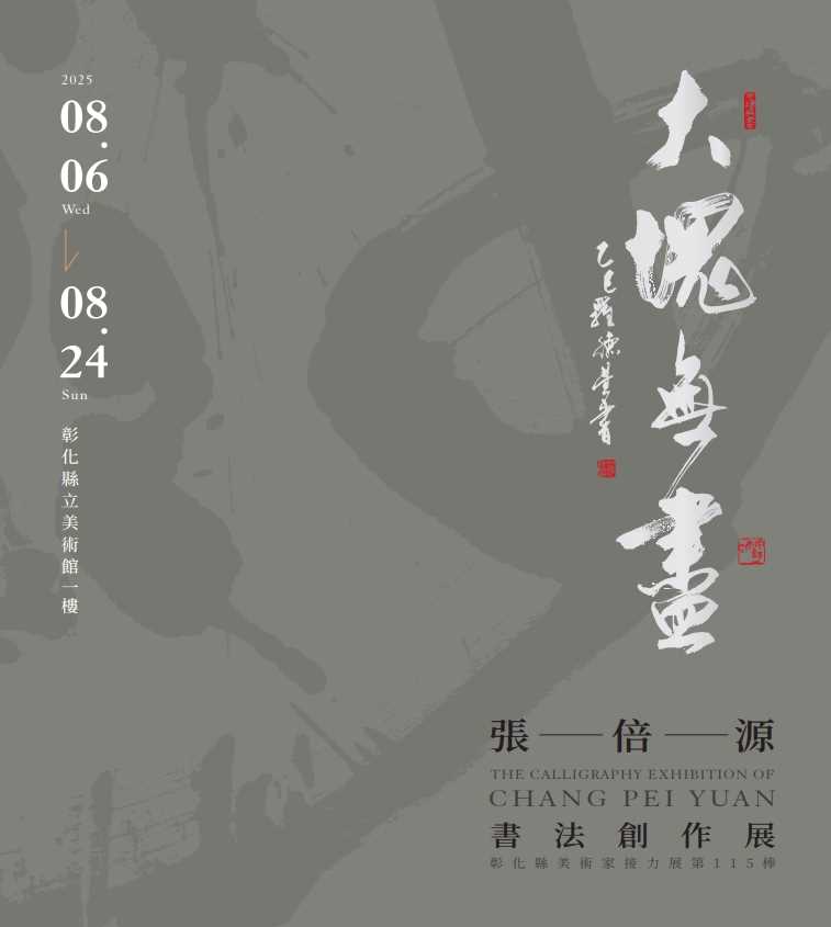 彰化縣美術家接力展第115棒由張倍源老師接棒,張倍源老師為本縣員林人,現任教於員林國小。受教於洪文黎校長、任容清老師,新竹師院畢業後又於明道大學國學所深造。曾獲聖壽杯第一名、磺溪美展磺溪獎、基隆美展第一名、桃城美展丁奇獎、桃源美展桃美獎、全國美術展免審查獎。